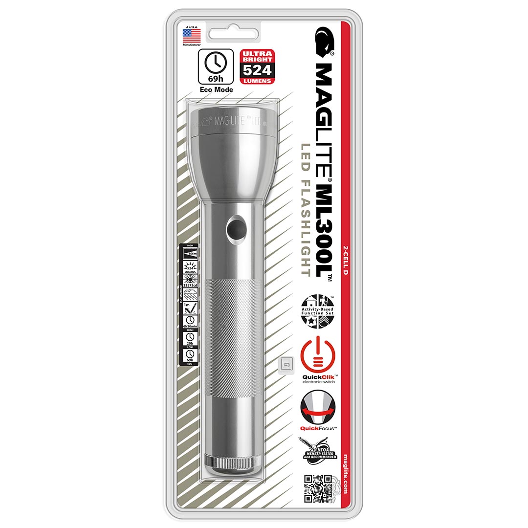 Maglite 2 Cell D Ml300L Led Flashlight Silver-Blister Pack