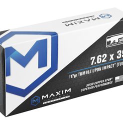 Maxim Defense Industries SBA Short Barrel Ammunition, 7.62X39, 117 Grain, Solid Copper Bullet, TUI (Tumble Upon Impact) Design, 20 Round Box MXM-49003