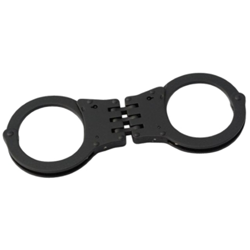 CTS Thompson Model 1058 Tri-Max Oversized Hinged Handcuffs. Same as Model 1054, but with the high security Tri-Max system. Positive clickback backloading system. Hinged handcuffs further restrict movement for added security. Oversized for larger wrists.