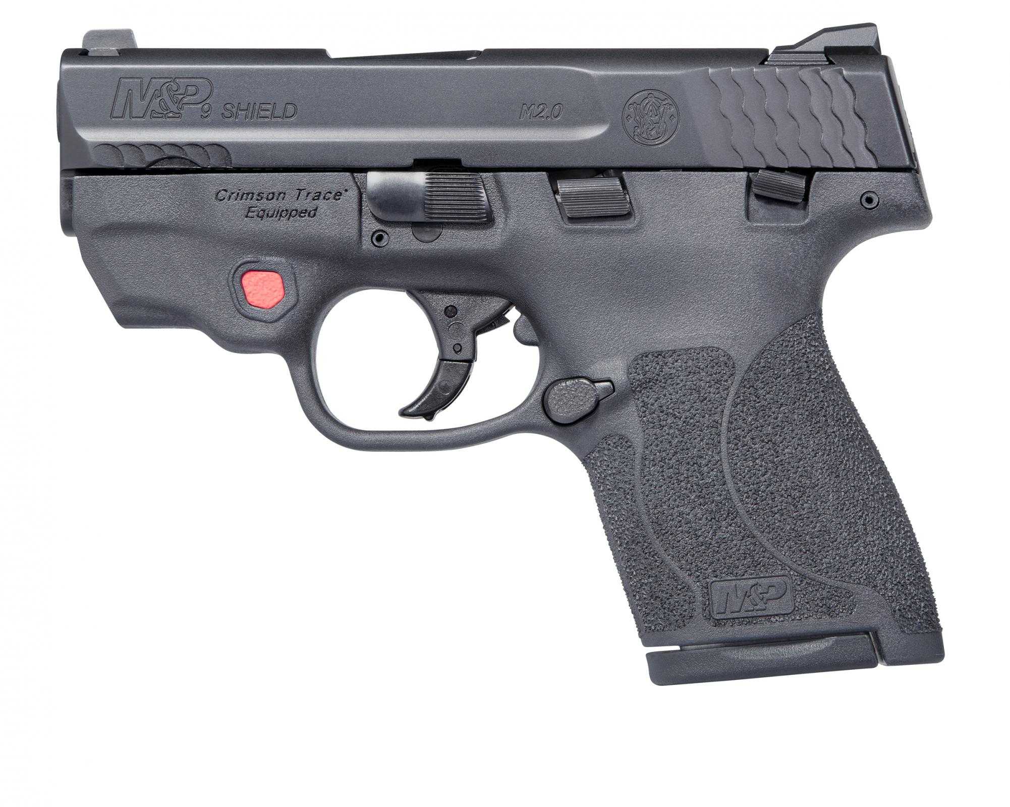 The reality of protection is that you never know when you’ll need it. Smith & Wesson took the power and features of the full sized M&P pistols and put them into a slim, lightweight pistol the size of your hand. The M&P Shield is an easy to conceal pistol that offers professional grade features with simple operation and reliable performance day or night. One million Shield owners can’t be wrong. Features Integrated Crimson Trace Red Laser Incorporates the design features of the M&P M2.0 line of firearms Aggressive grip texture for enhanced control New M&P M2.0 crisp trigger with lighter trigger pull Tactile and audible trigger reset Extremely thin and lightweight – can be comfortably carried all day M&P’s patented take-down lever and sear deactivation systems allow for disassembly without pulling the trigger Includes 2 magazines: one 7-round magazine and one 8-round extended grip magazine Optimal 18-degree grip angle for natural point of aim Armornite durable corrosion resistant finish
