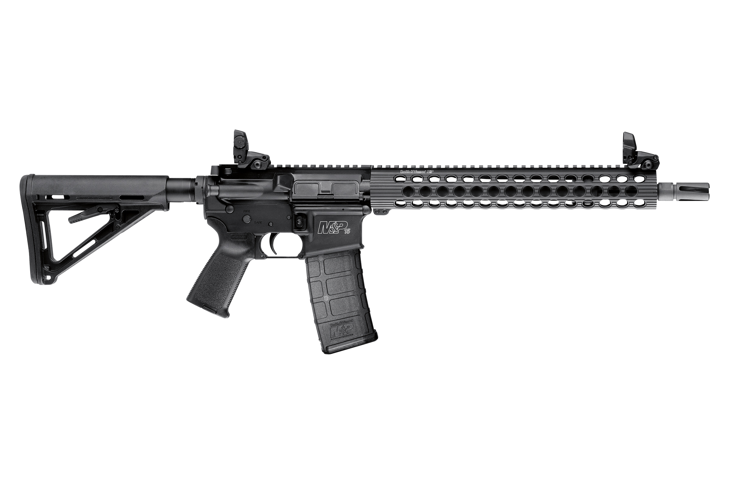 M&P15 Rifles are the ideal modern sporting rifle. Built to perform multiple uses under various conditions, M&P15 Rifles are as versatile as they are reliable. Engineered for a wide variety of recreational, sport shooting and professional applications, M&P15 Rifles are easy to accessorize, but hard to put down. M&P15 Rifles are lightweight and rugged embodying the best combination of function and form. Features 14.5in barrel with 1 in 7in twist and fixed Vortex Flash-Hider for overall length of 16.1in 13in Troy TRX Extreme Handguard Folding Magpul MBUS Front and Rear Sights Magpul MOE Stock and Grip Magpul PMAG Magazine Permanent Smith Vortex Flash Suppressor Chrome Lined Bore and Chamber Forged, Integral Trigger Guard Chromed Firing Pin Armornite Barrel Finish Compatible with most standard AR15 components and accessories