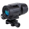 The Trijicon Miniature Rifle Optic (MRO) HD Magnifier is a 3 power reflex optic magnifier specifically designed to magnify the target and target seen through the MRO HD red dot optic. By magnifying the target the shooter is able to use the crisp dot in the MRO HD to quickly and accurately engage targets at extended distances. The MRO HD Magnifier is short and compact which saves weight and rail space. The design features easy-to-set flush, toolless adjusters that make centering the reticle in the field of view easy. The adjustable diopter allows the user to tune the optical performance to their eyes. The 3x magnifier also includes a multi position, military-grade flip-to-side quick release levered mount which makes mounting and unmounting the optic from the host platform quick and easy. This mount is also designed to flip into place over the top of back up iron sights commonly used on modern sporting rifles. Each magnifier includes a riser plate and additional fasteners to allow the optic to align with either 1/3rd or Full Co-Witness MRO HD mounts.