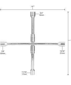 Oemtools 20563 4-Way Folding Lug Nut Wrench 14″
