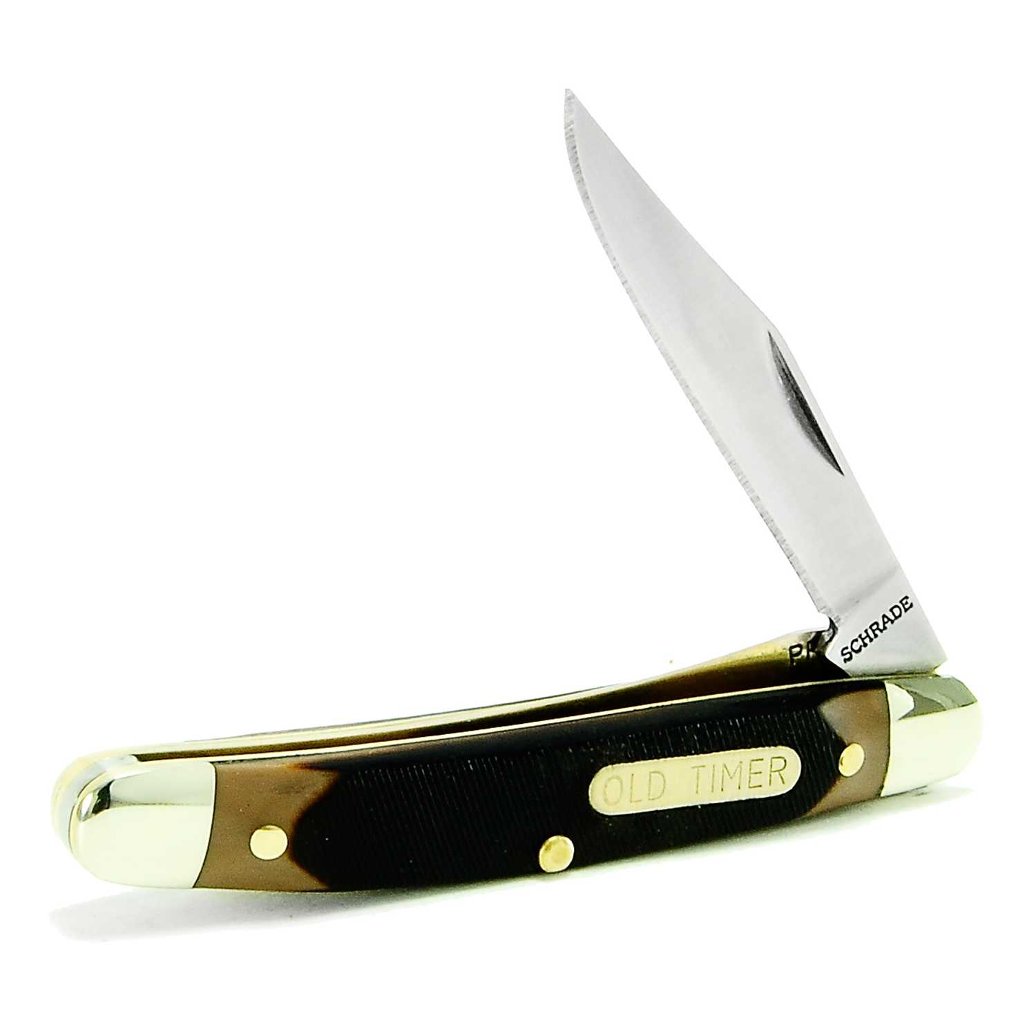 The Old Timer Gunstock Trapper Lock Blade Folding Pocket Knife contains a 7Cr17 high carbon stainless steel clip point blade with nail pull. The old timer sawcut handle features nickel silver bolsters, brass pins, and heat treated back springs. The blade length is 3.1 inches with an overall length of 7 inches.