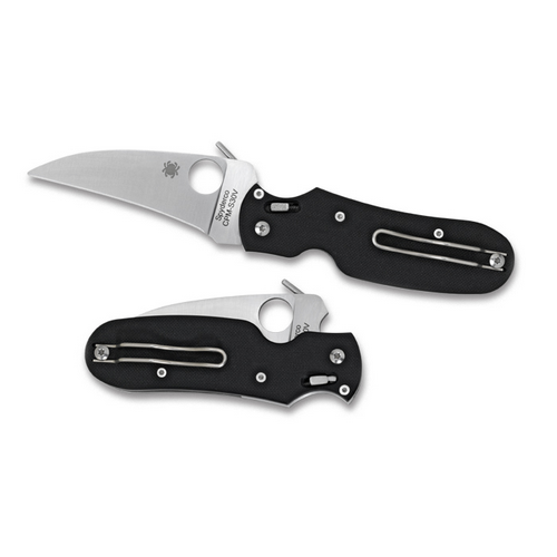 As a ?reverse-edge? tool, the P?Kal?s handle is ergonomically designed to be held with the sharpened edge facing inward toward the user to facilitate powerful pulling cuts. The handle?s skeletonized full stainless steel liners are capped by textured black G-10 laminate scales and house Spyderco?s patented Ball Bearing Lock?an extremely strong lock mechanism that is also completely ambidextrous. To support all appropriate carry and deployment methods, the P?Kal also features a reversible steel wire clip that provides tip-up, edge-forward and edge-back carry on both the left and right sides.