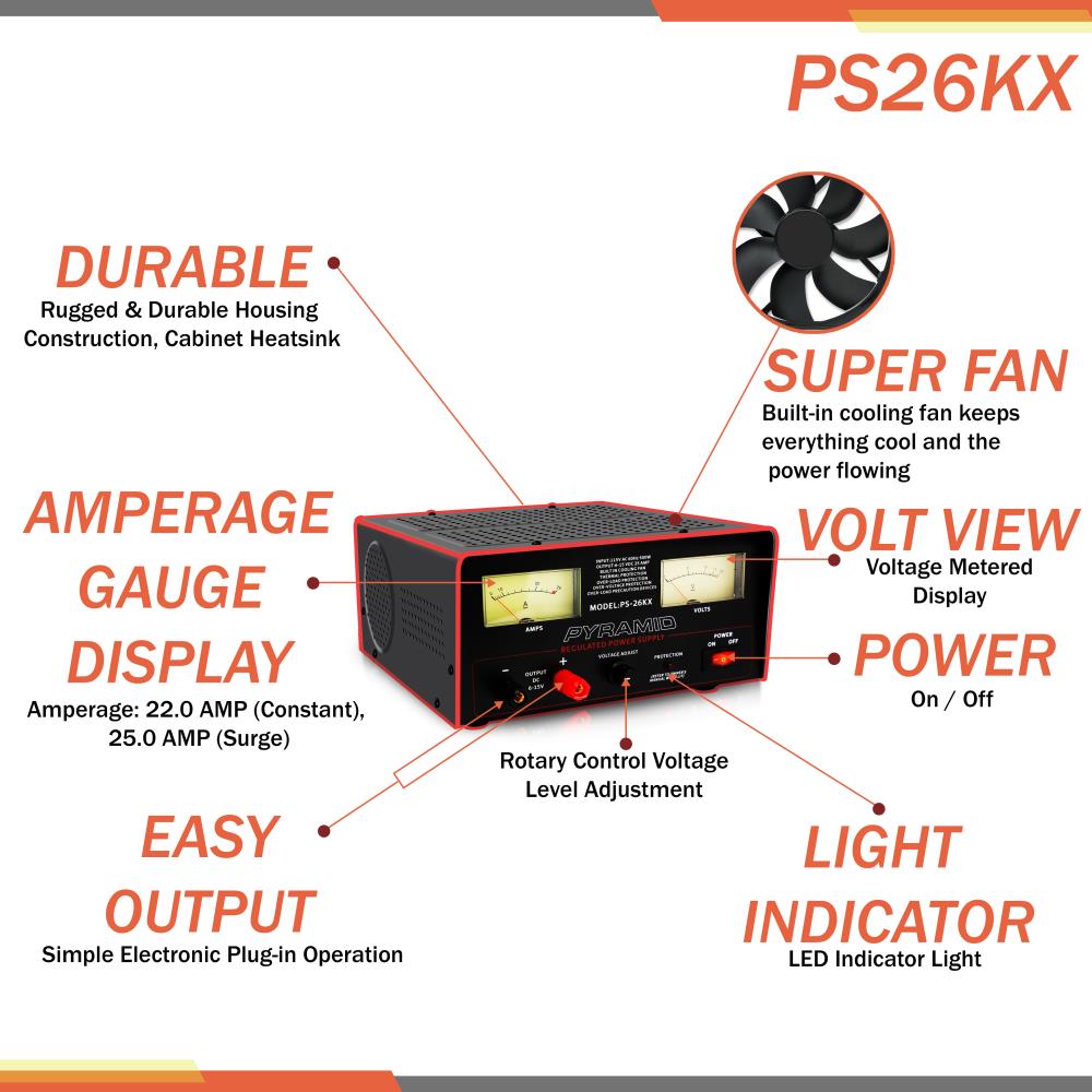 Power Supply Pyramid 25 Amp 6-15 Volt W/Cooling Fan