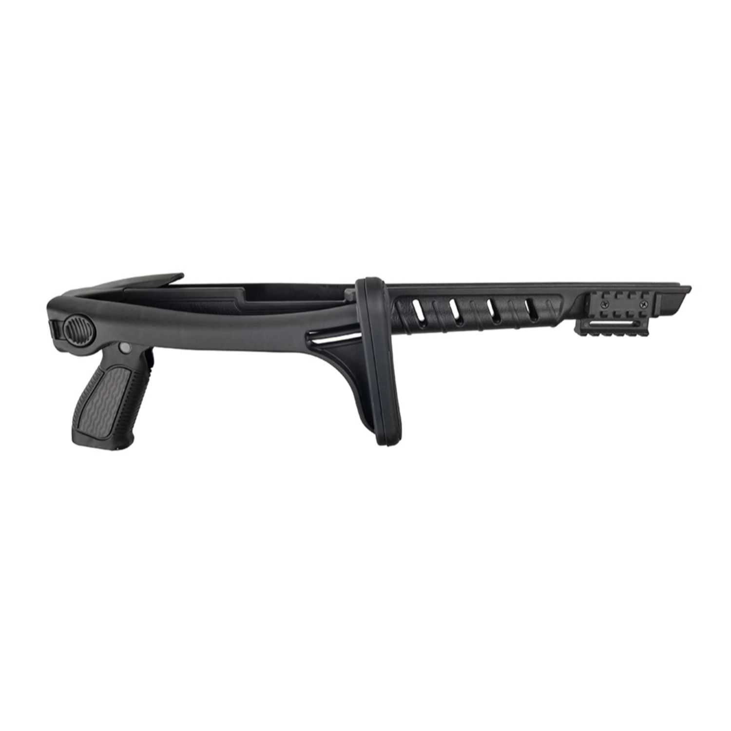 The ProMag Archangel Tactical Folding Stock Marlin 795 60 is a lightweight folding stock for the Marlin 795 60 rifle. It features a pistol grip with a storage compartment and a Picatinny tri-rail forend. It also has a positive locking side folding stock and rubber recoil pad. The stock is made of injection molded black polymer. This stock is made in the USA.