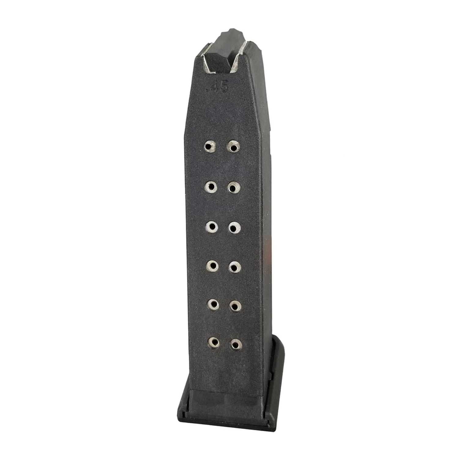 The ProMag Glock Model 21 .45 ACP 13 Round Magazine fits Glock Model 21 and 30 .45 ACP. The magazine body is constructed of a proprietary DuPont Zytel based polymer with a full length steel internal insert stamped and welded like the factory magazine. It also has an injection molded magazine follower. The spring is made from heat treated chrome silicon wire. This magazine is made in the USA.