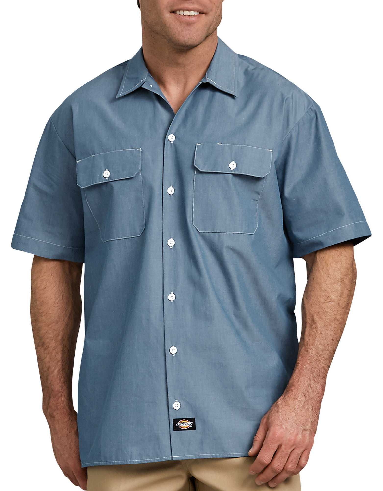 Relaxed Fit Short Sleeve Chambray Shirt-DK-WS509