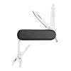 Reasons we offer smaller knives are numerous but essentially people’s hands come in different sizes and we occasionally find ourselves in social situations that dictate use of a smaller blade. Many think smaller versions of the same model are simply shrunk down. Not so. For every design to reach its utmost level of ergonomic comfort and maximum performance we often take features and engineer/rework them into a more diminutive pattern. An example is our 79mm version of the Rescue Model. A smaller equivalent of the C14 93mm Rescue, it too has a flat saber-ground, SpyderEdge, VG-10 blade that ends in a sheepfoot safety tip. For smoother thumb rotation we enlarged the Spyderco Trademark Round Hole, which in turn creates a prominent hump to position the thumb on while cutting. The FRN waffle textured handle is available in indigo blue, black and safety orange with an ambidextrous, tip-up pocket clip.