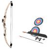 The SA Sports Panther Youth Compound Bow Set is the perfect way to introduce kids to compound bows. The Panther is easy to draw with a 10 pound draw weight and a 21 inch draw length. The set includes a finger tab and arm guard for the comfort and safety of young archers as they learn basic archery techniques. Comfort grip is compatible with right or left hand use. With a hip quiver, 2 target arrows, and a target face, this set is has everything your young hunter needs to start learning.