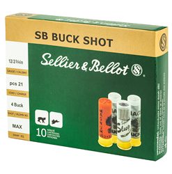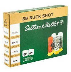 Sellier & Bellot Shotshell, 12 Gauge, 2.75″, #4 Shotshell, 21 Pellets, 10 Round Box SB12BSH