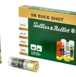 Sellier & Bellot Shotshell, 12 Gauge, 2.75″, #4 Shotshell, 21 Pellets, 10 Round Box SB12BSH