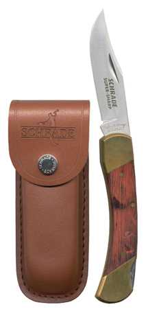 The Schrade Bearhead Folding Knife is 400 series stainless steel. There is a durable delrin handle. The weight is 1.5 ounces. The blade is 2.2 inches and the handle is 3 inches.