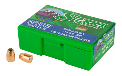 Sierra Bullets Sports Master, 9MM, 115Gr, .355 Diameter, Jacketed Hollow Point, 100 Round Box 8110