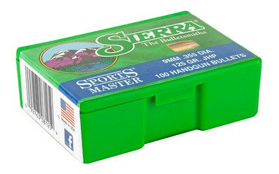 Sierra Bullets Sports Master, 9MM, 125Gr, .355 Diameter, Jacketed Hollow Point, 100 Round Box 8125