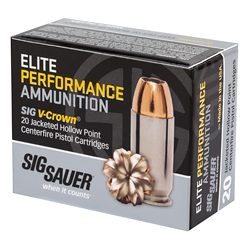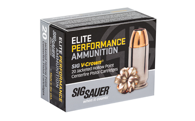 Sig Sauer Elite Performance V-Crown Ammunition, 9MM, 124 Grain, Jacketed Hollow Point, 20 Round Box E9MMA2-20