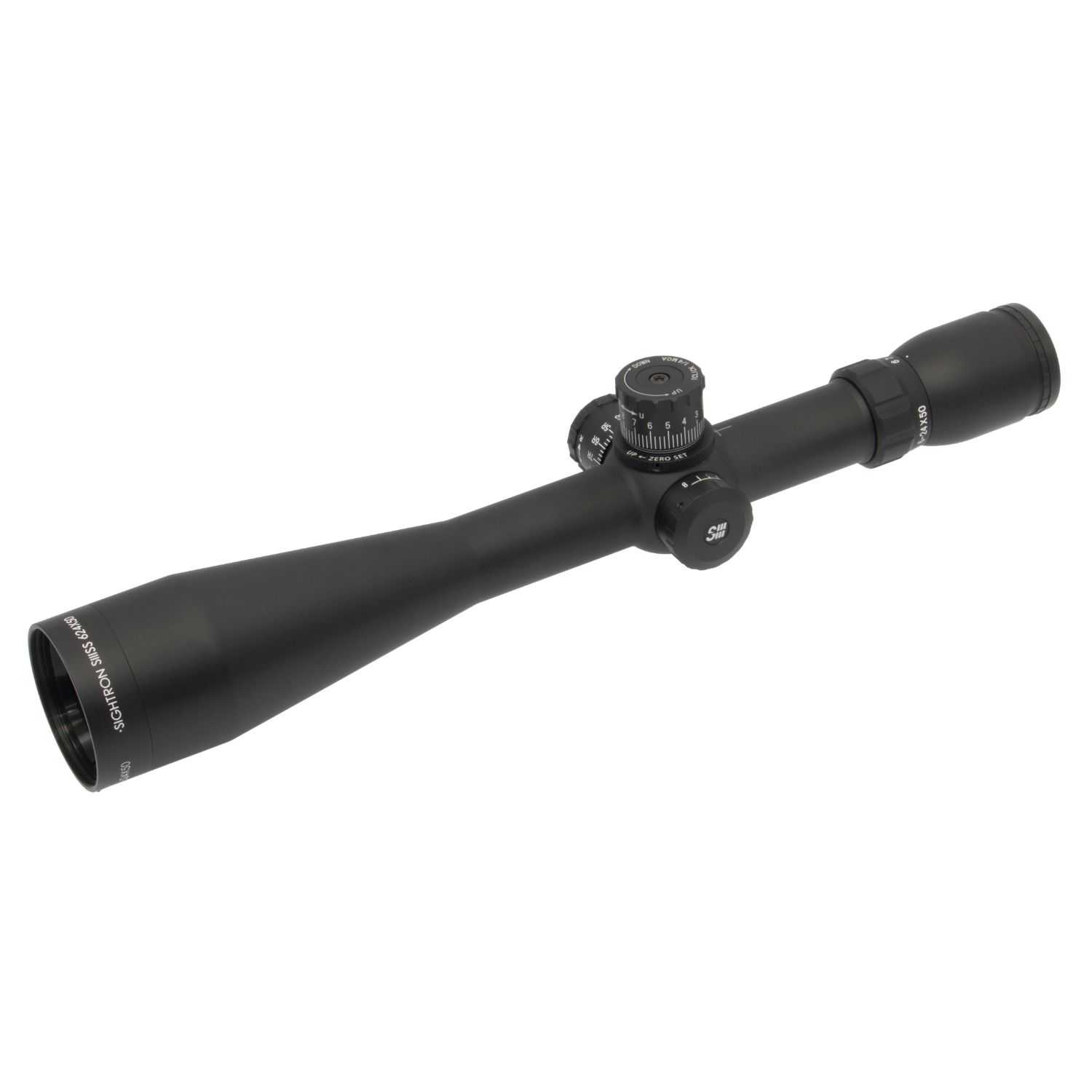 The Sightron SIIISS624X50LRZSMOA features 6-24X magnification with an objective diameter of 50mm and tube diameter of 30mm. he fast focus eyebell allows for quick and easy adjustments in the field. The large oversized adjustable turrets in .25 MOA adjustments are resettable to zero and designed to withstand extreme weather elements. The side focus features parallax adjustment aimed for quick and easy adjustment and will focus from the minimum focusing distance to infinity. The zero stop rotating lock ring does not require any knob removal or shims. This rifle scope features ExacTrack windage and elevation adjustment system and Zact-7 fully multi-coated precion ground glass. This scope is also waterproof, shockproof, and nitrogen gas charged.