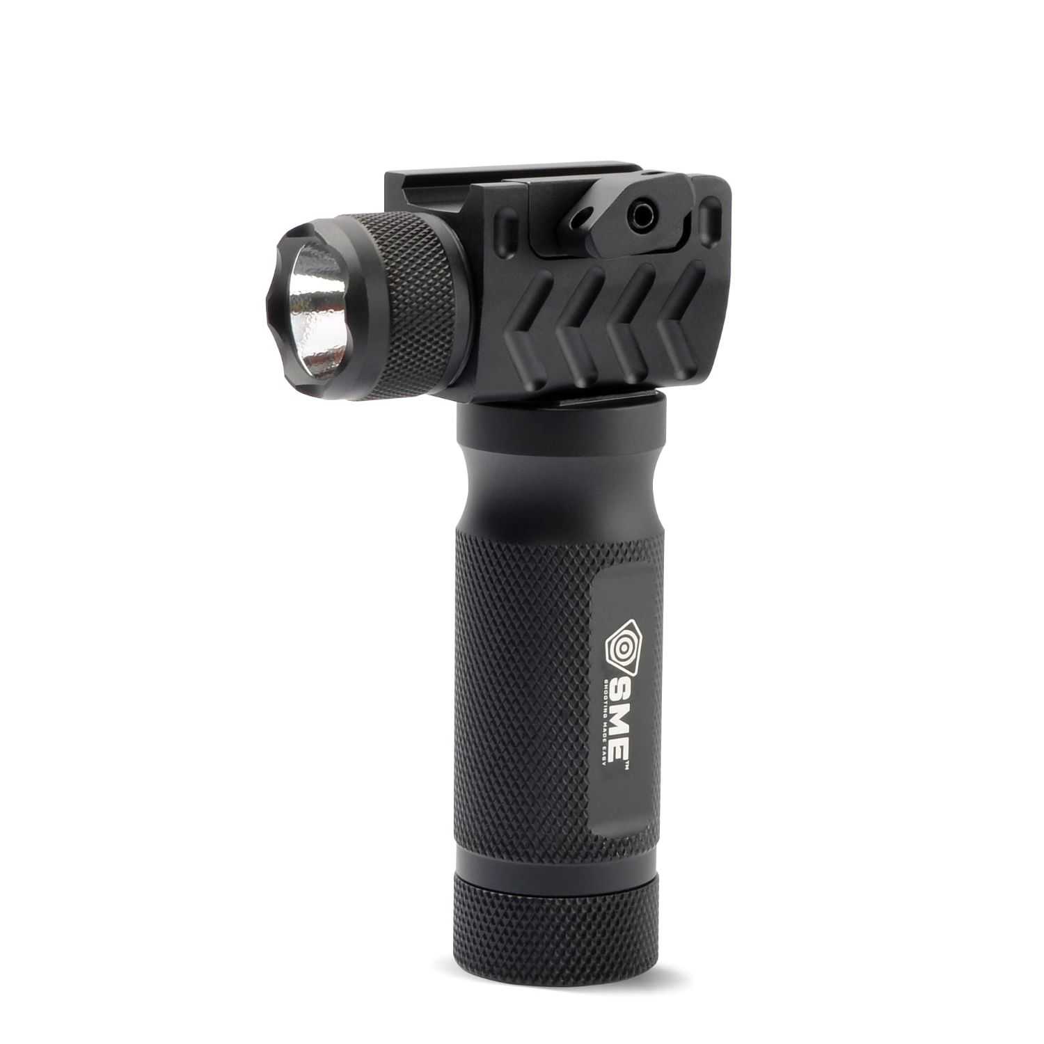The SME Vertical Forend Grip Weapon Light offers two excellent tactical features desired by countless AR owners in one convenient package. The Vertical Forend Grip is lightweight, and features a quick crossbar mounting system with wing nut which allows installation and removal on any picatinny or weaver rail. The durable aircraft grade aluminum light projects a powerful 260 lumen output with constant on and blinding strobe modes. It also offers spot focus for clear and precise target identification. Whether your gearing up your prepping firearm or just enjoy mounting as much tactical gear to your AR platform as possible, the SME Vertical Forend Grip Weapon Light is for you.