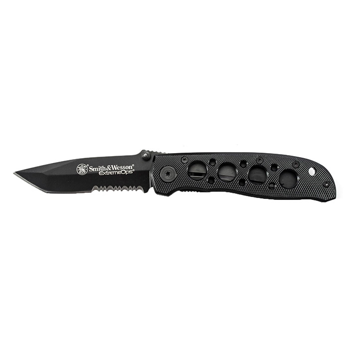 Smith & Wesson Ext Ops Liner Lock Fold Knife Partial Serrated Drop Pnt Tanto Blade Alum Hndl