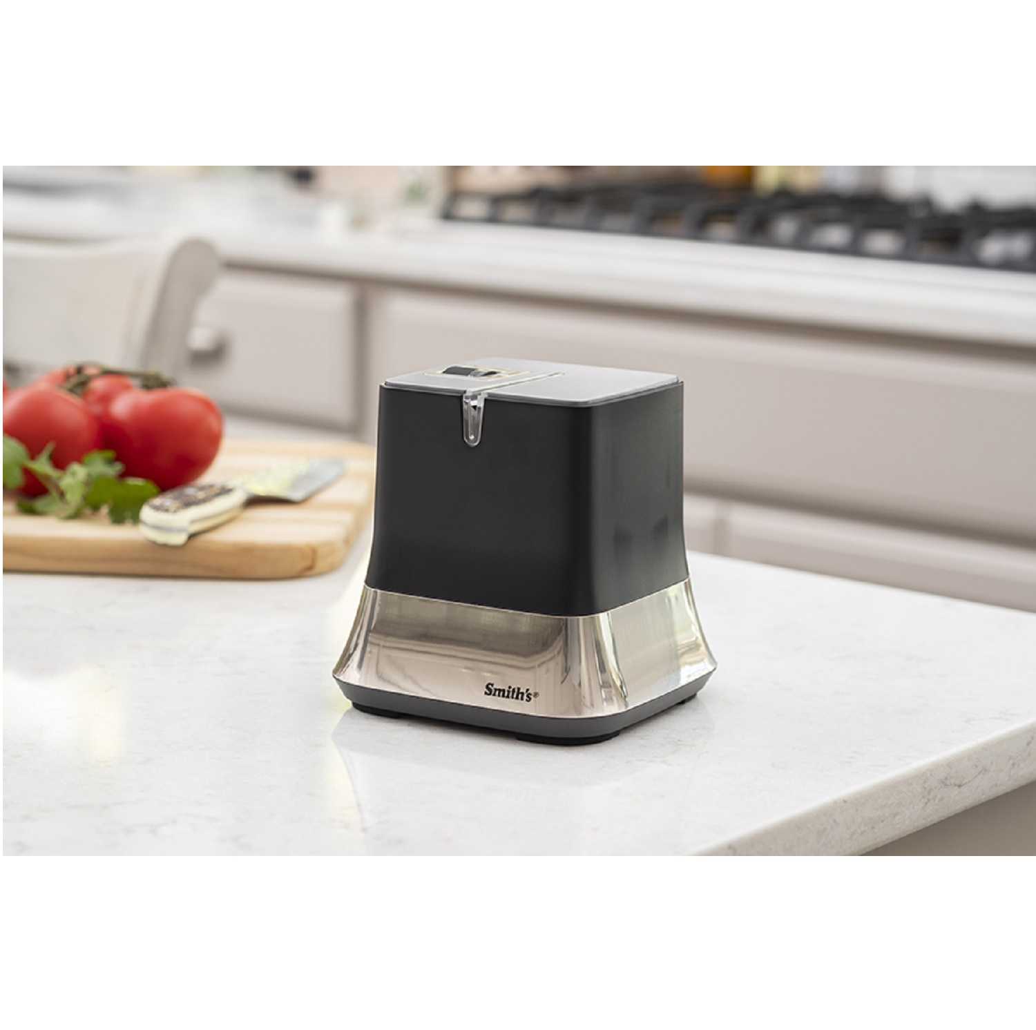 Provides correct sharpening angle to match that created originally by the knife manufacturer Sharpens both sides of the knife at the same time without damaging the knife Diamond interlocking wheels remove a minimal amount of metal and not for use with ceramic or single-bevel knives Sleek new design saves 55% more counter space over the competition Single slot design is 75% faster over competitive sharpeners