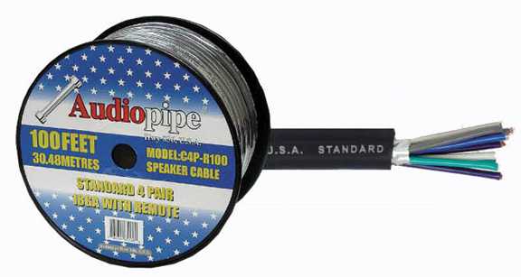 Speed Cable Audiopipe 100′ 9 Wire; 4Pr. Spkrs + Remote