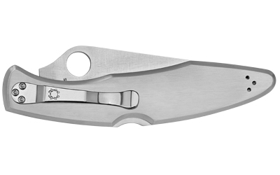 Spyderco Police, 4.125″ Folding Knife, Clip Point, Plain Edge, VG10/Satin, Stainless, Circle Thumb Hole/Pocket Clip C07P