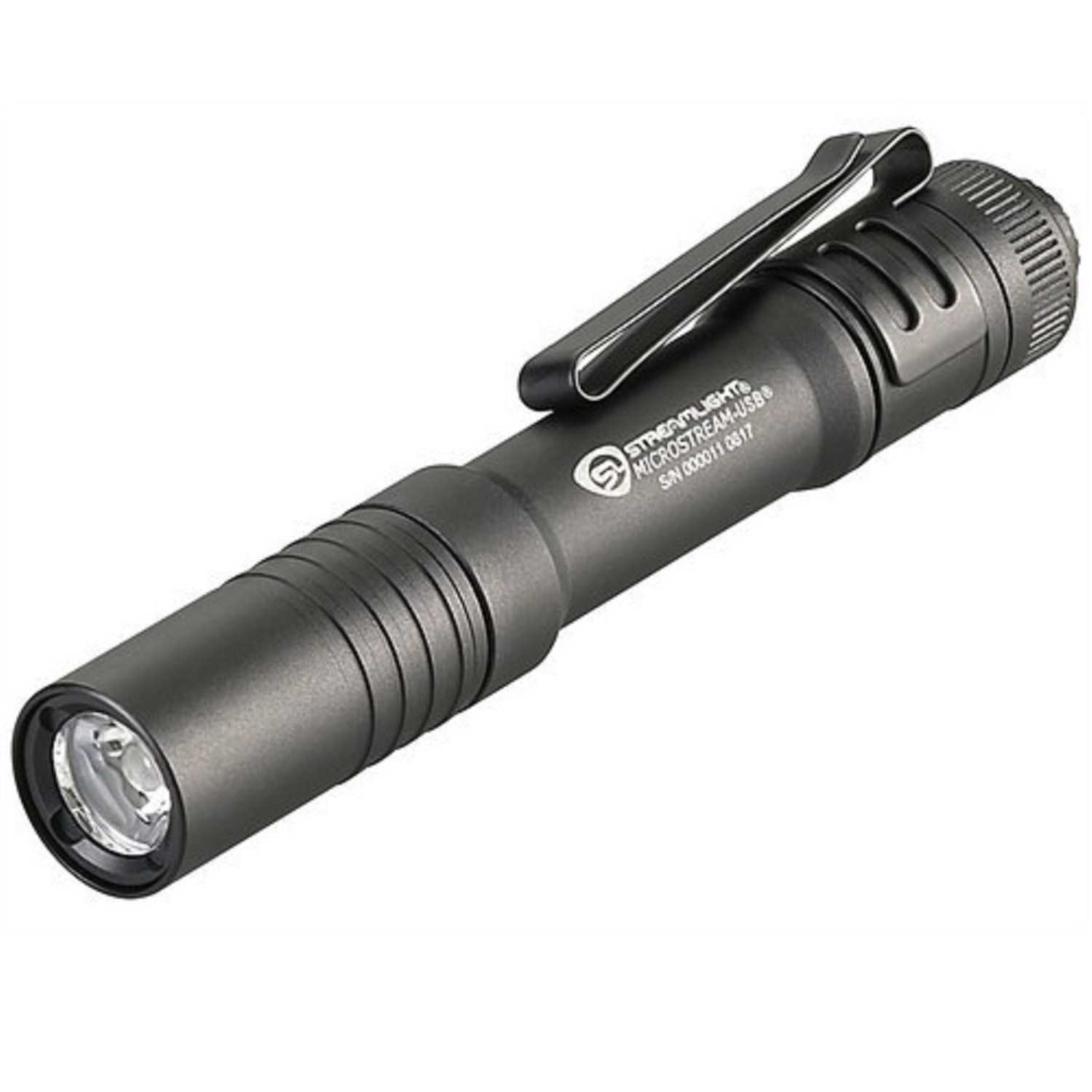 The Streamlight Microstream USB is a compact rechargeable flashlight designed for use in all markets. It features a tail cap switch, momentary or constant on operation, a combination pocket/hat clip for convenience, and amazing 250 Lumens brightness and 1.5 hour run time for a light of its size and price. The aluminum housing with Type II Military Spec anodizing helps make the light extremely durable and abrasion resistant.