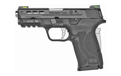 Smith & Wesson Performance Center Shield EZ, Semi-automatic, Compact, 9MM, 3.8″ Ported Barrel, Black Armornite Finish, Polymer Frame, Black Color, Performance Center Aluminum Trigger, Grip Safety, Thumb Safety, Hi-Viz Litewave H3 Tritium/Lightpipe Sights, Silver Barrel/Trigger/Grip Safety, 8Rd, Performance Center Cleaning Kit includes Cleaning Rod, Patches, Nylon Brush, Bronze Brush, Nylon Jag, Nylon Slotted Tip 13225