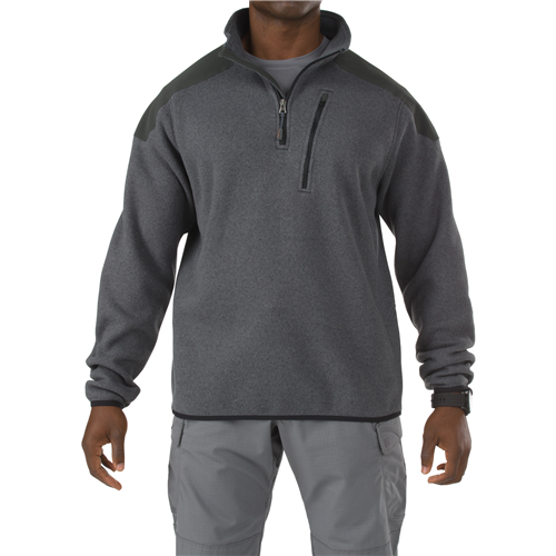 Combining the fashionable comfort of a designer sweater with the functional utility of a TDU jacket, the Tactical Quarter Zip Sweater is perfectly suited for both covert field duty and casual CCW wear. Crafted from high strength brushed polyester, this handsome and durable 5.11 fleece sweater provides a compressed fit coupled with elasticized bindings at the waist and sleeves, ensuring a secure fit even during strenuous activity. Welded patches at the elbows and shoulder increase durability and scuff resistance. In addition, the Tactical Sweater features a newly designed covert lumbar pocket that can be easily accessed with one hand, providing a powerful and covert tactical storage option.