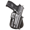 When un-holstering, do so in a deliberate and rapid upward motion. Silicone spray may be used in the trigger guard area of the holster as a means of lowering the level of retention. Passive retention is automatically engaged upon re-holstering.