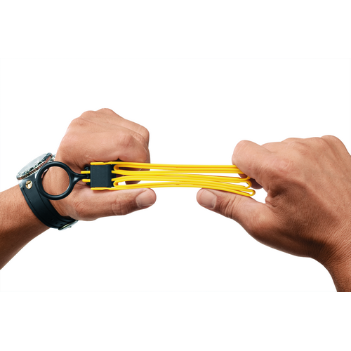 As the name suggests, the straps of the lightweight ASP Tri-Fold disposable restraint fold in three places, for ultra-compact storage on a belt or vest. When deployed, they provide wide open loops for fast and easy application. They’re perfect for crowd control, military use, aviation security and other situations where traditional handcuffs aren’t practical or desirable. The tri-fold straps are extra-wide, with smooth edges for safety, and run through a fully-enclosed ratchet block with a shim guard to prevent picking. Tightening the restraint is quick and positive, using either the included molded pull ring or optional, extra- long pull cord. Once tightened, squeezing the secondary compression lock buttons provides additional security. Once applied, Tri-Folds must be cut off. The latest generation of Tri-Folds incorporate a new polymer formulation – perfected after over a hundred prototypes – that won’t dry out or get brittle, giving them increased strength and longer storage life. Tri-folds are available in black or high-visibility yellow, as well as a red training version that can be applied and removed repeatedly, without cutting.