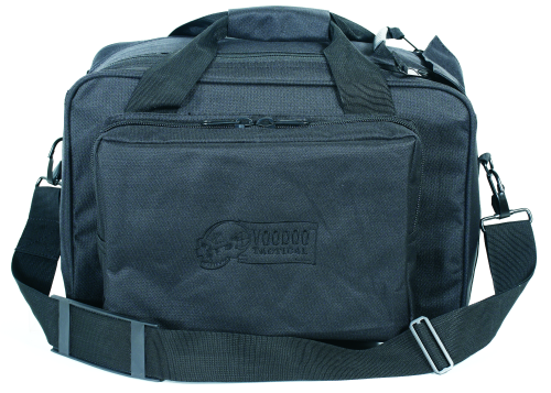 Tired of lugging several bags to the range? Switch to the Two-In-One Full-Size Range Bag from Voodoo Tactical–the one bag fitted for all day shooting. A removable center compartment pulls out to offer an easily transportable, range-ready carrier. Two padded, zippered pockets provide secure and protected handgun storage. The large center storage space is able to hold several boxes of ammunition. Sewn-in elastic straps secure magazines for quick reloads, maximizing range time. The larger outer bag employs full-length zippers for easy and convenient access to contents. An additional, large exterior pocket provides further storage for extra targets, shooting logs, optics and commonly used range items.