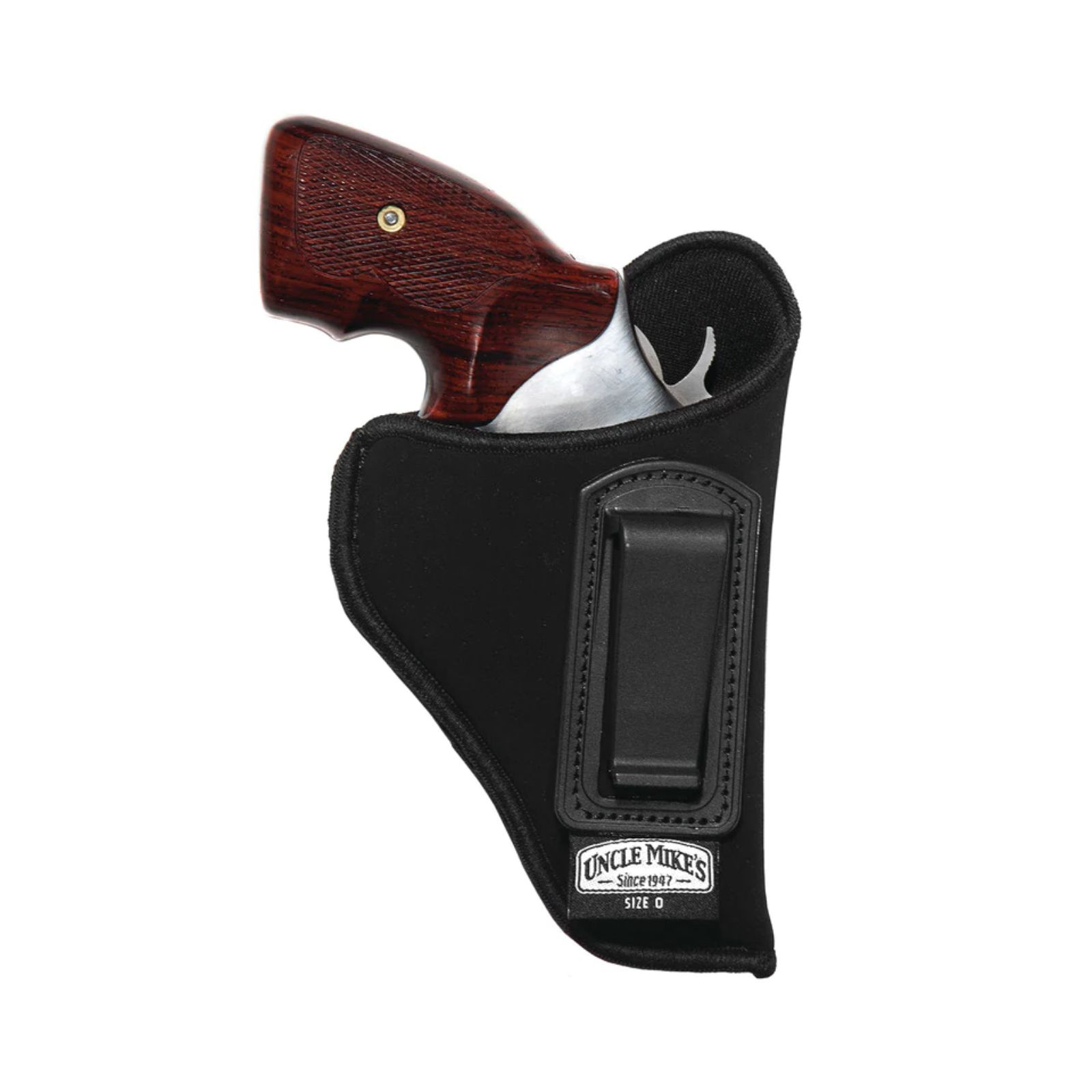 The Uncle Mikes OT ITP Holster Size 0 RH Black allows the wearer to carry concealed without drawing unwanted attention thanks to its slim and flexible design. It features an ultra-thin four-layer laminate no thicker than conventional suede leather holsters and an internal moisture barrier that won’t transmit perspiration to gun. The smooth nylon lining allows for easy draw and the suede-like exterior helps anchor holster inside pants. This holster fits 2 and 3 inch barrel small and medium frame double action revolvers.