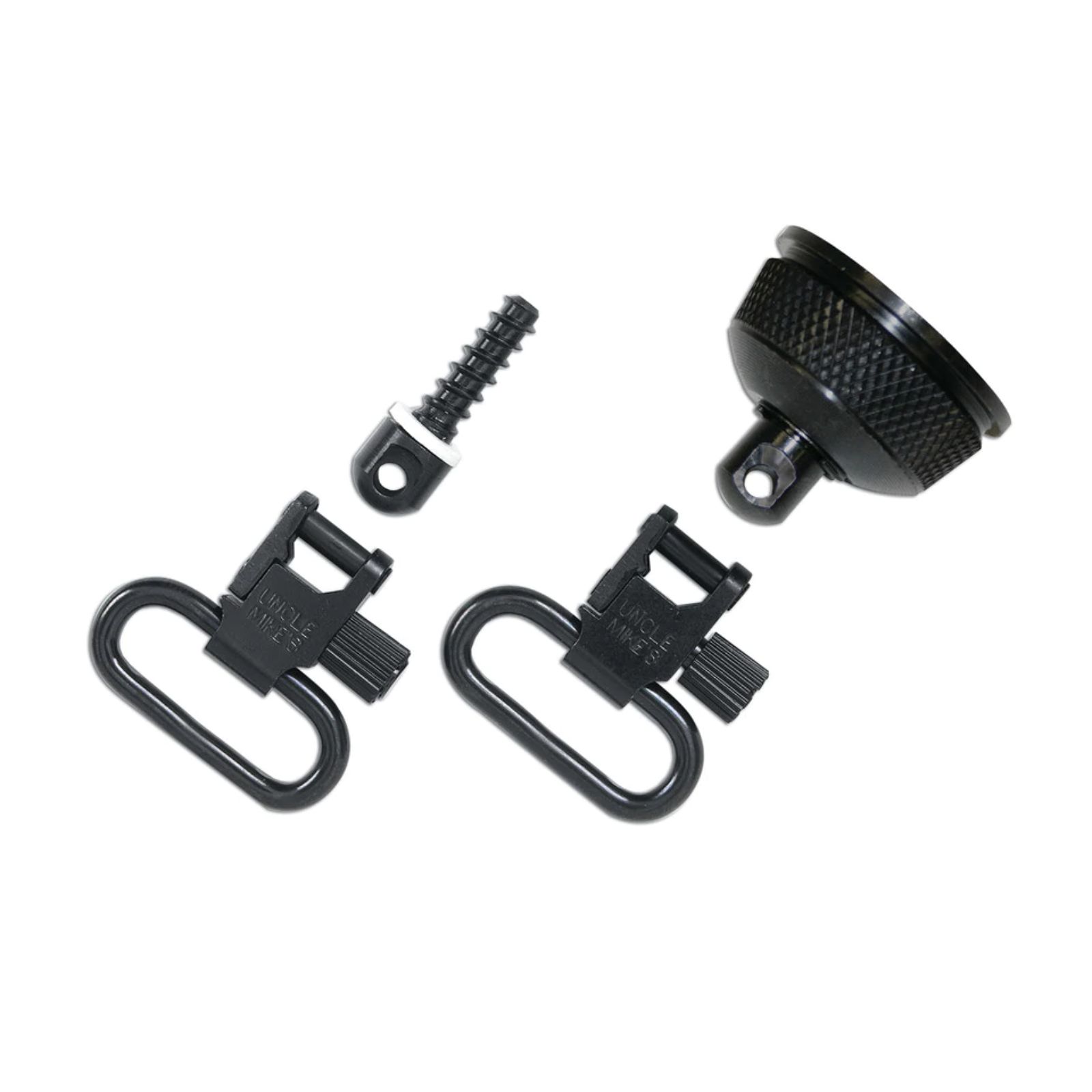 Now you can add sling swivels to your favorite pump or auto without altering your shotgun. The Uncle Mikes Swivels QD REM 870 1in Ext Ratchet Cap Set Blued has a factory magazine cap with the swivel base already installed. Just unscrew the factory magazine cap and replace it with the new cap. These swivels fit the Remington 870 (with conventional ball and detent lug system). It includes replacement magazine cap with swivel base, 0.75 inch wood screw buttstock swivel base and two Super Swivels.
