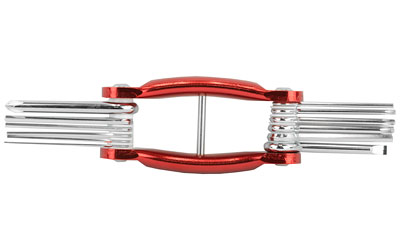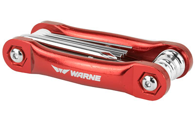 Warne Scope Mounts Multi-Tool, Compact, Aluminum Handle, Chrome-Vanadium Steel Bits, 12 Most Popular Driver Bits. AllenHead .05in., 1/16in., 5/64in., 3/32in., 1/8in., & 5/32in., Torx Driver T10, T15, & T20, Pin Remover, Flat Blade Scewdriver, Phillips Head Screwdriver. RT-1