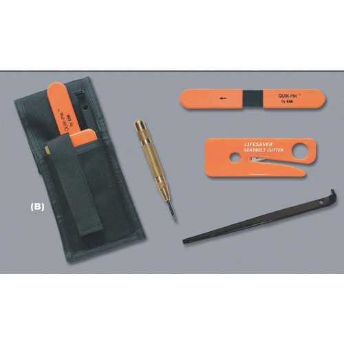 Kit includes: 1st Response Holster Seat Belt Cutter Trunk Key Quik-Pik Window Punch
