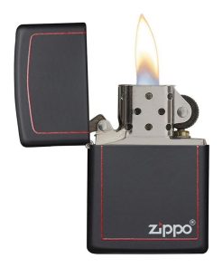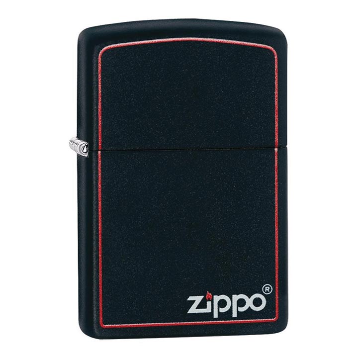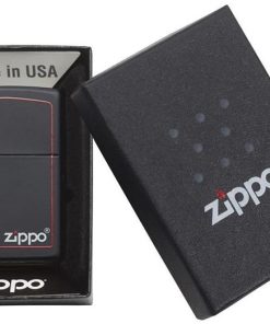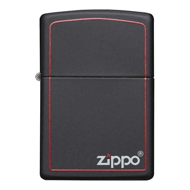 Zippo Windproof Lighter Black Matte W/Zippo Logo & Red Border