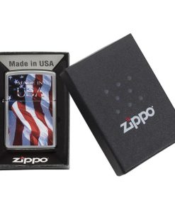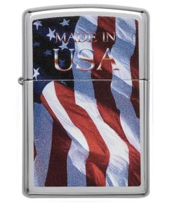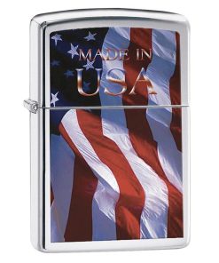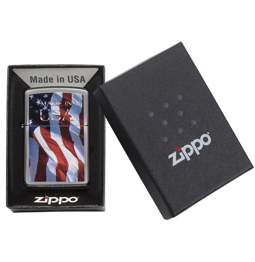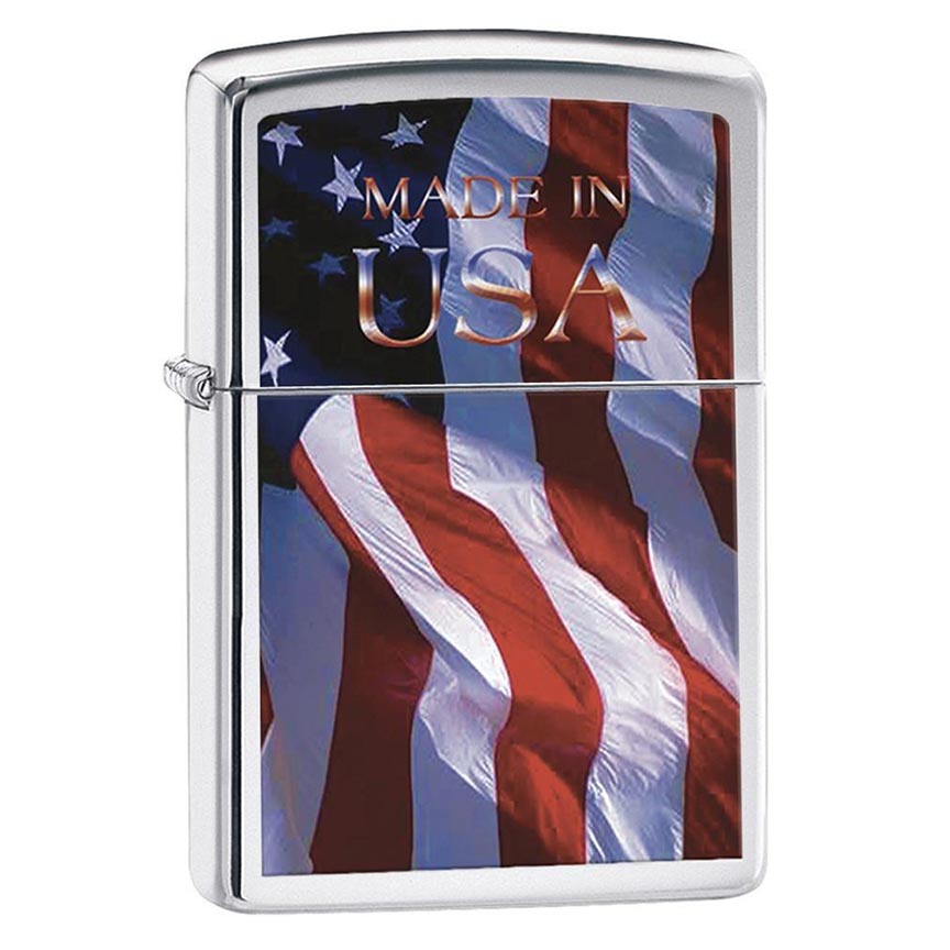 Zippo Windproof Lighter Made In Usa Flag High Polish Chrome Finish